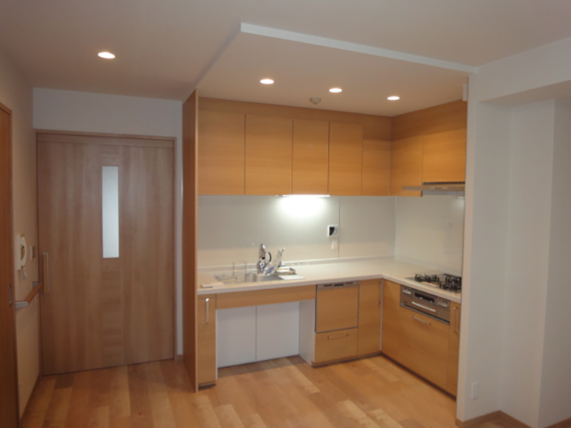 木目調の建具とアクセントクロスが生み出すスタイリッシュ空間